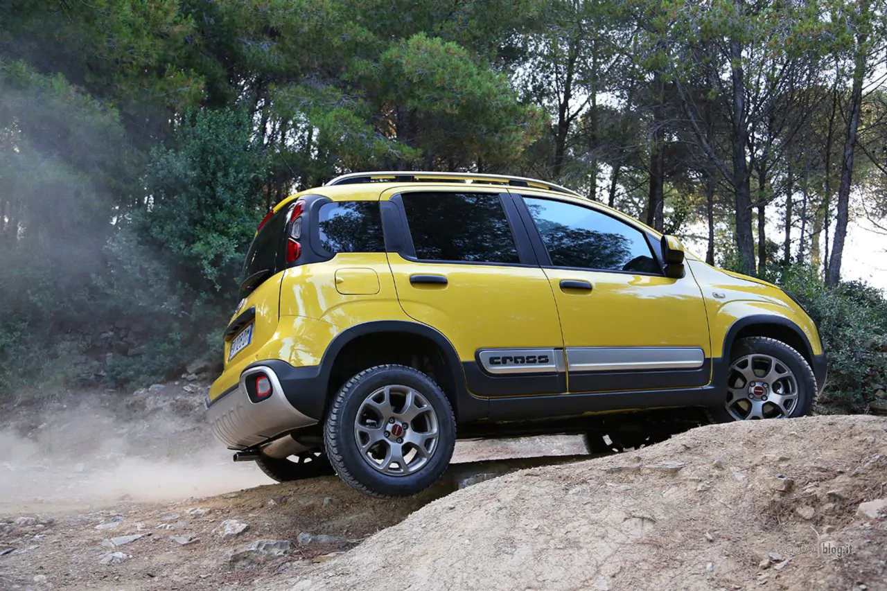 1) Fiat Panda Cross: Rispetto alla Panda 4×4, la nuova Fiat Panda Cross vanta migliori angoli d’attacco e di uscita (24° e 34°) e anche di dosso (+1°), ed è l’unica vettura di dimensioni così contenute ad essere dotata della trazione integrale Torque on demand, che si avvale di due differenziali e di un giunto controllato elettronicamente, e della funzione Electronic Locking Differential che migliora la guida e lo spunto in partenza su percorsi a scarsa aderenza.