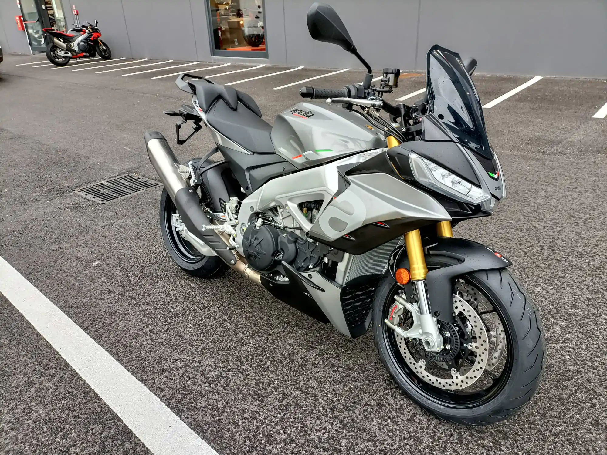 Gli pneumatici misurano 120/70 all’anteriore e 200/55 al posteriore mentre i cerchi sono da 17 pollici. Il serbatoio ha una capacità di 18,5 litri compresi i 4 litri di riserva. La nuova Tuono 1100 V4 pesa 184 kg a secco e 209 kg in ordine di marcia.