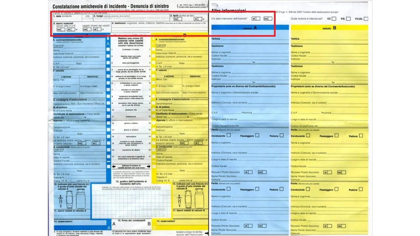 Il vantaggio di aver compilato già la propria parte è quello di evitare errori o omissioni al momento dell’incidente, quando già tensione, ansia e nervosismo possono prevalere sulla lucidità.