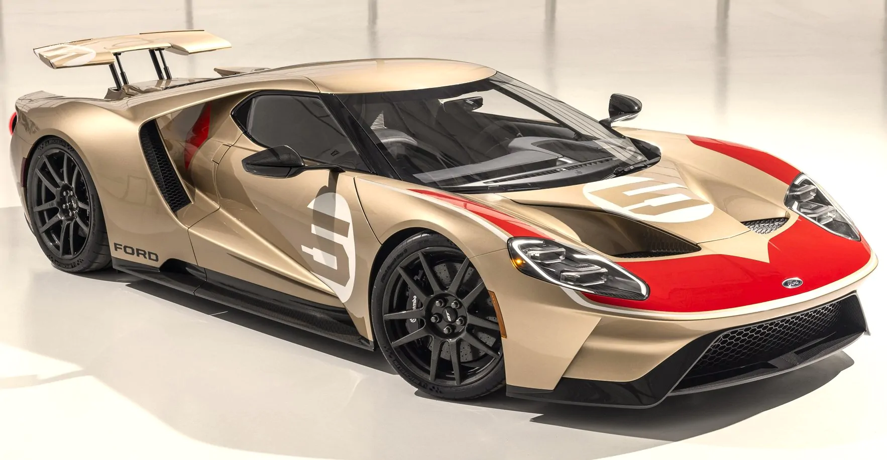 Questo successo diede agli ingegneri Ford delle idee e lavorarono a questa edizione “ultra limitata” della GT nella storica livrea oro e rossa, timbrata con il numero 5 della GT40. Ford ha lasciato gran parte degli elementi in carbonio esposti, non verniciati, comprese le ruote da 20 pollici. All’interno, l’Alcantara predomina con un colore ebano che ricorda i colori esterni. Il motore rimane invariato: il 3.0 V6 biturbo eroga ancora 647 CV.
