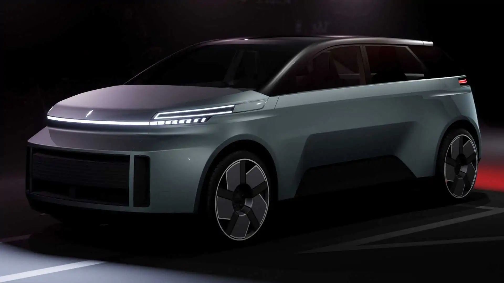 L’esterno del Project Arrow EV Concept è caratterizzato da un assetto basso e largo e da una linea del tetto fluida. Si notano anche diversi elementi aerodinamici, come i deflettori attivi della griglia e lo spoiler posteriore.