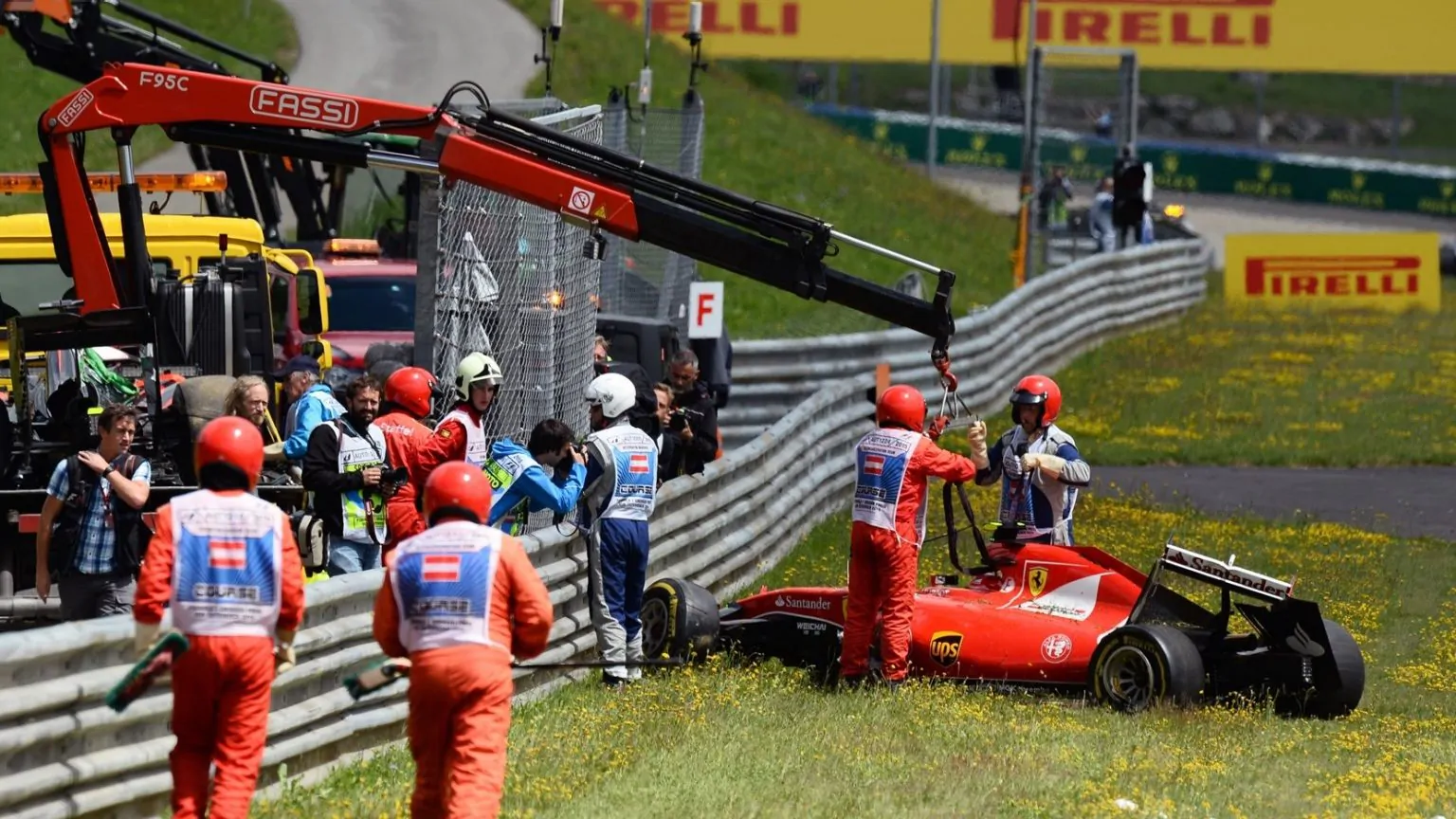Gran premio da dimenticare per le Ferrari in Austria. Al secondo giro Alonso è protagonista di una rocambolesco incidente, al termine del quale la vettura si schianta sulla Ferrari di Raikkönen. Le vetture non partono più, entrambi si ritirano. Si ritirerà anche l’altra Mc Laren, quella di Button.