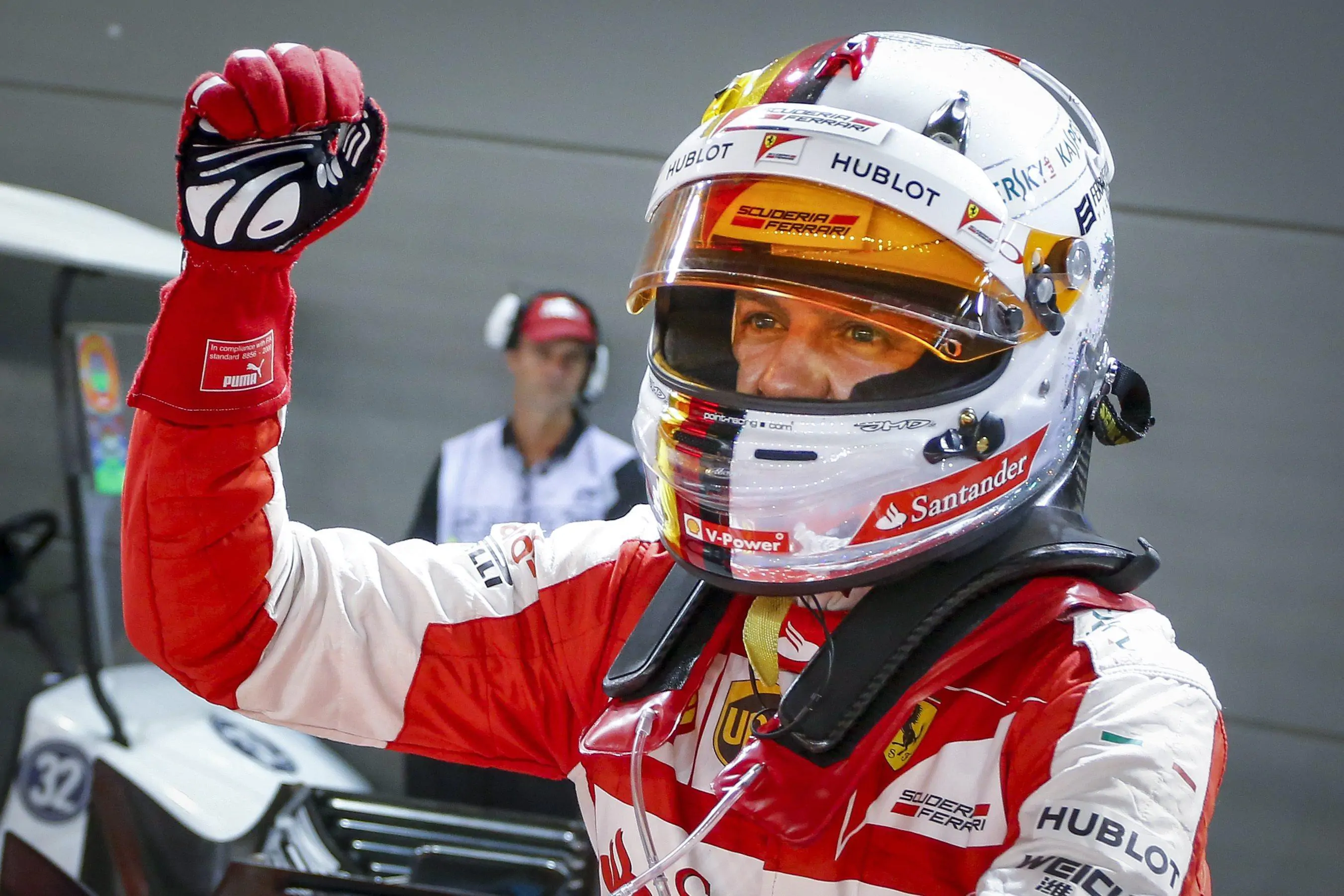 La Ferrari rompe un digiuno di 60 gare e festeggia la sua pole con gioia, rompendo il dominio Mercedes. Si tratta infatti della prima pole non Mercedes della stagione, conquistando un tempo di 1’43’’885. Accanto al tedesco partirà l’Australiano Ricciardo sulla sua Red Bull. In seconda fila, terzo tempo per l’altra Ferrari, quella di Kimi Raikonen, a sette decimi, seguito subito dall’altra Red Bull del russo Kvyat.